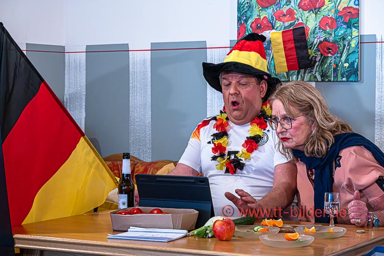 Dazwischen erscheint auch noch Alfons der Mann der Nachbarin auf – ein eingefleischter Fußballfan der darüber seine Frau etwas ‚vergisst‘.