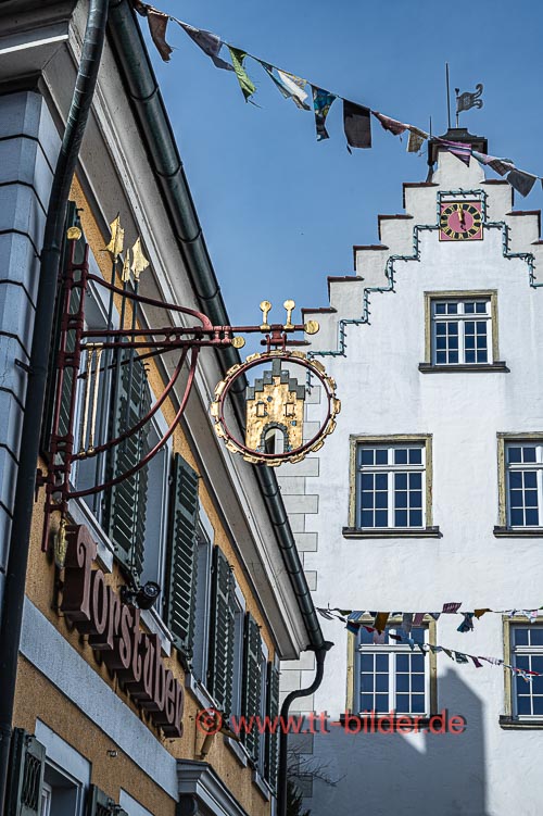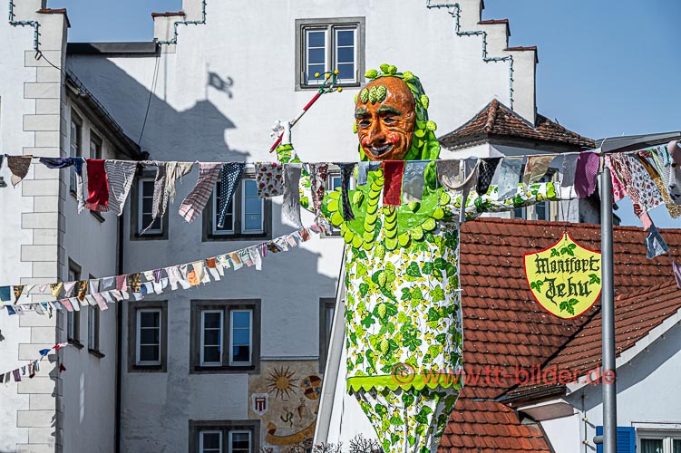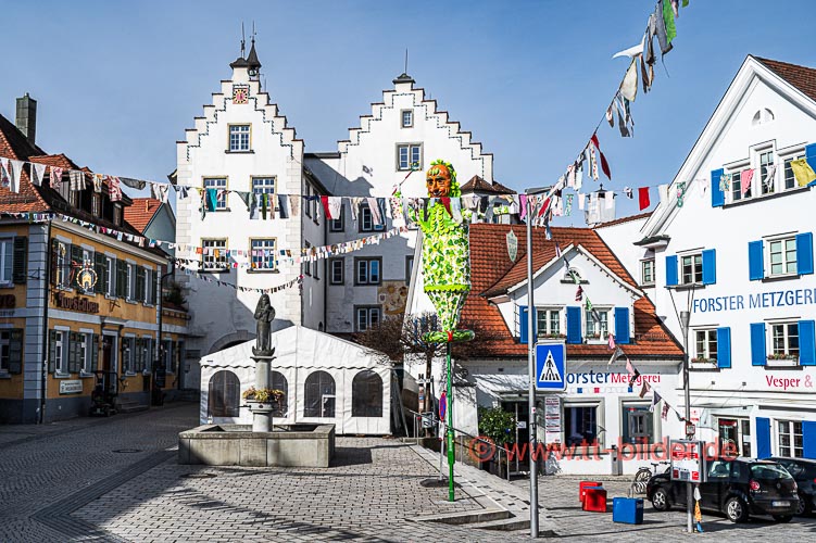 Meine persönlichen Fasnets-Impressionen beginnen mit den närrischen Straßen am sonnigen Bromigen Freitag. Die Fähnle in den Straßen leuchteten in bunten Farben und der Hopfennarr grüßte wohlwollend am Bärenplatz.