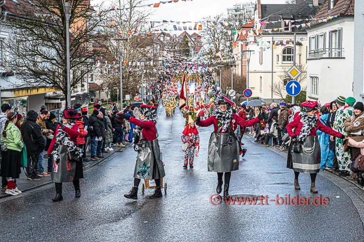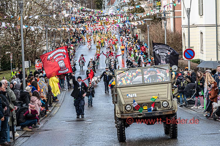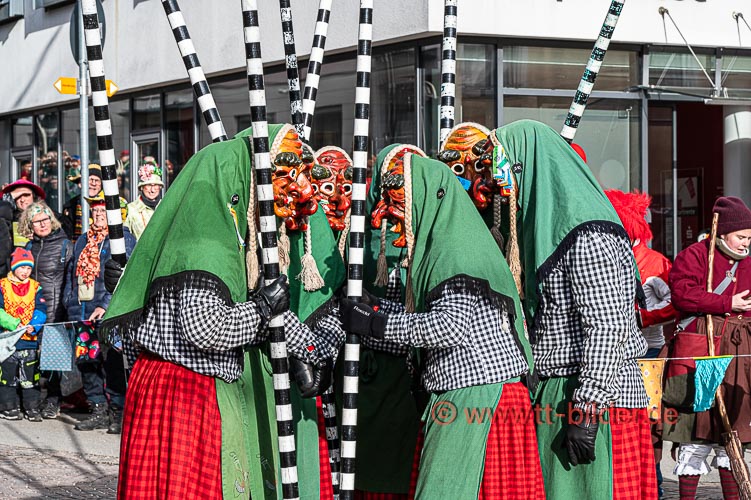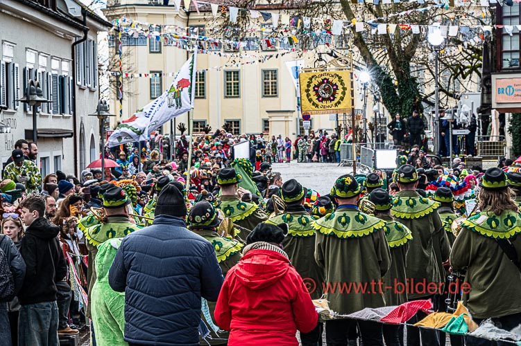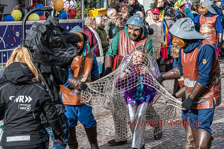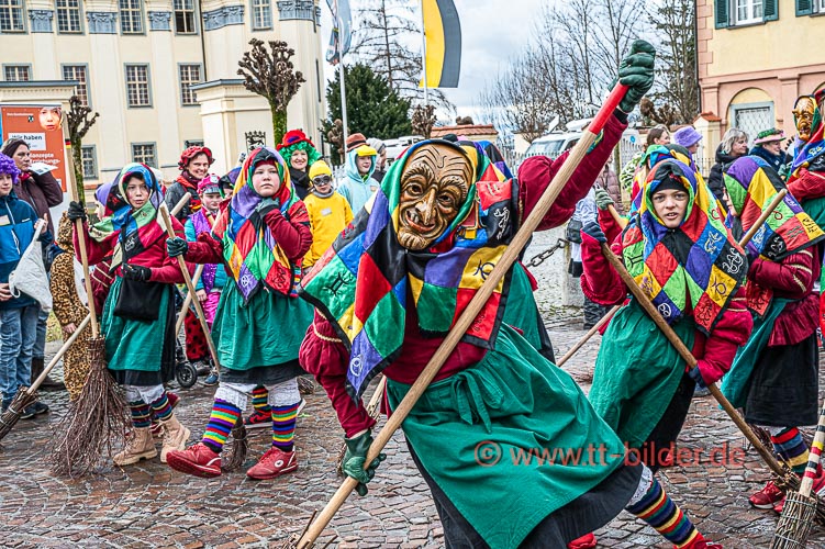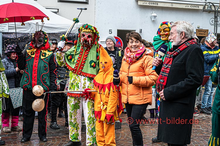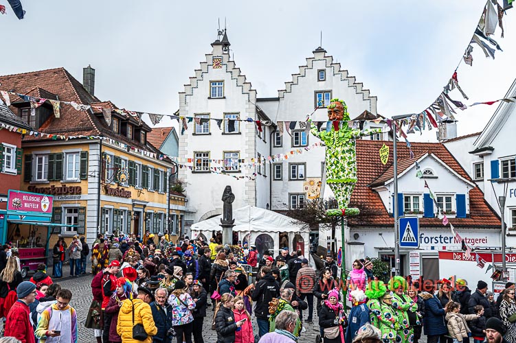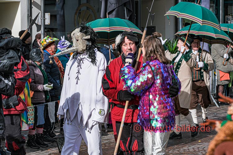 Beim traditionellen Tettnanger Umzug am Fasnetsende war wieder einmal der SWR mit einer Life-Übertragung beteiligt. Zwar weniger Gruppen aber bunt und lebendig konnte sich das Narrenvolk noch einmal austoben und zeigen was sie so draufhaben. Da wollte denn auch das Wetter kein Spielverderber sein. Entgegen der Vorhersage hielt sich der Regen bis zum Ende des Umzugs zurück.