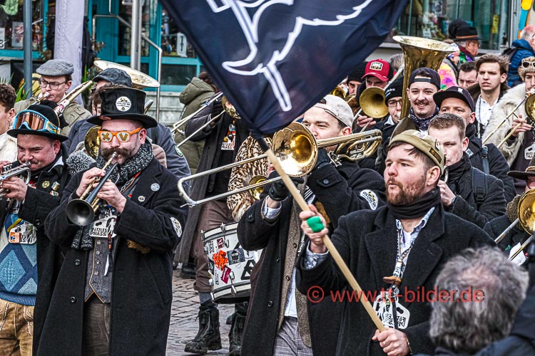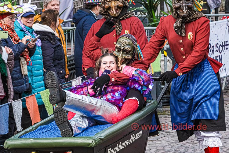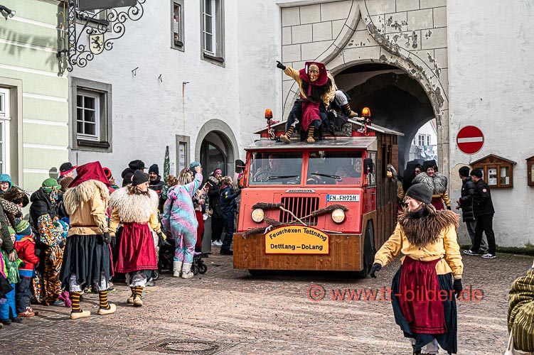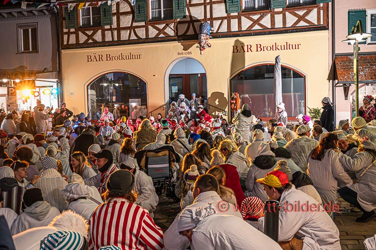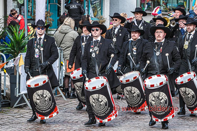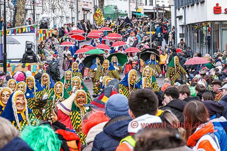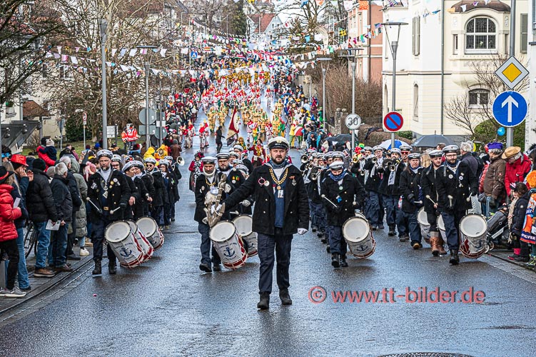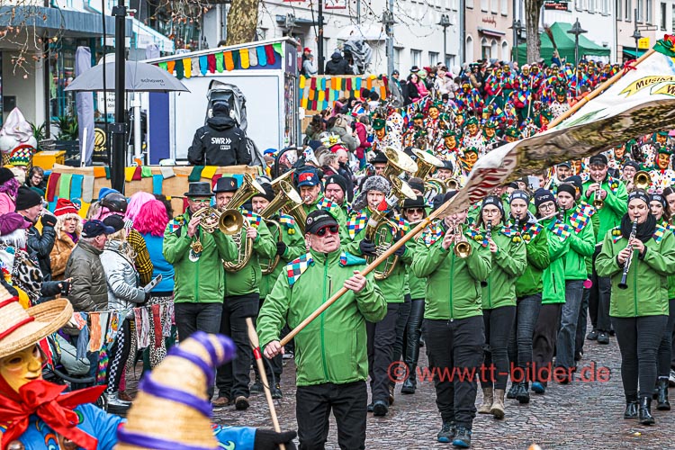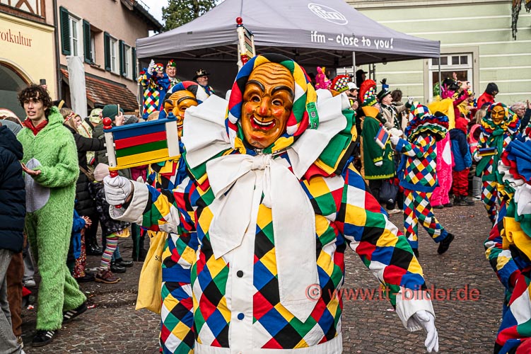 Beim traditionellen Tettnanger Umzug am Fasnetsende war wieder einmal der SWR mit einer Life-Übertragung beteiligt. Zwar weniger Gruppen aber bunt und lebendig konnte sich das Narrenvolk noch einmal austoben und zeigen was sie so draufhaben. Da wollte denn auch das Wetter kein Spielverderber sein. Entgegen der Vorhersage hielt sich der Regen bis zum Ende des Umzugs zurück.