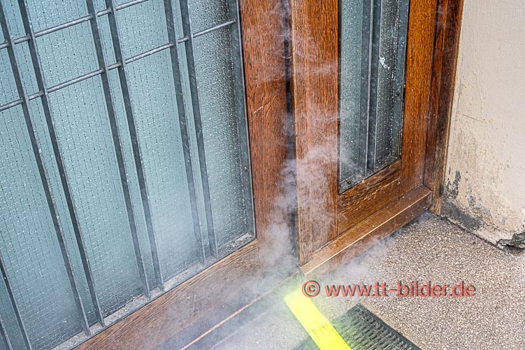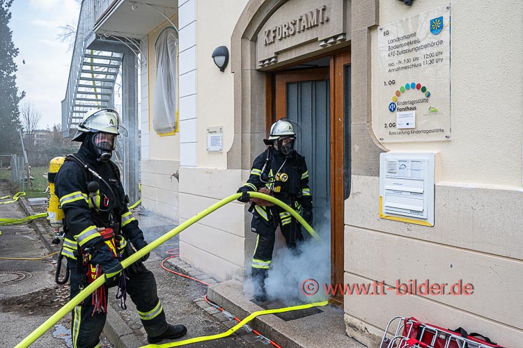 Samstagnachmittag am ehemaligen Forsthaus. Eine große Menschenmenge hat sich vor dem Haus versammelt aus dem durch Fenster und die Türe Rauch dringt. Ein Brand? Nein, Moderator Mathias Schmid erklärt den Feuerwehrfans den Ablauf der diesjährigen Hauptübung der Tettnanger Feuerwehr.